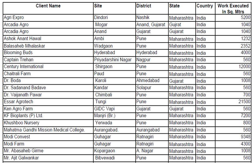 With more than 500 of the India's leading Agro based companies and farmers as our clients, we can only name a few of them here.